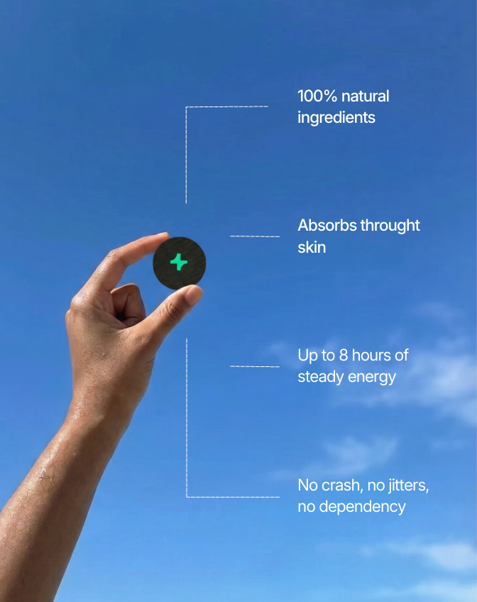 Wear a sticker in the morning and feel consistent energy for 8 hours. Without coffee, pills, or crashes.